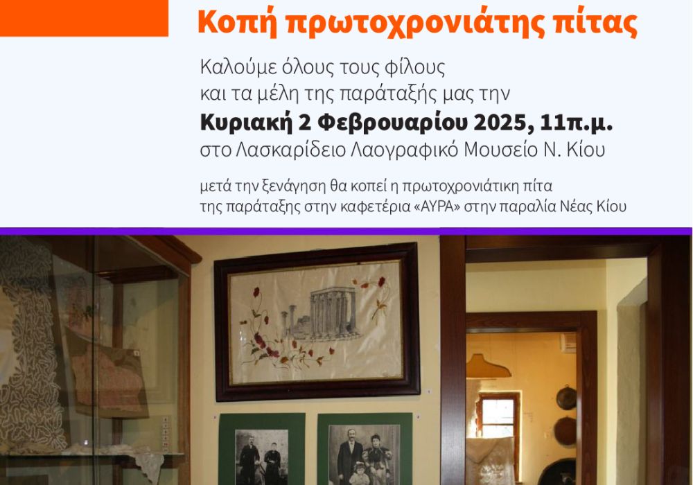 Γνωριμία με το Λαογραφικό Μουσείο Νέας Κίου Κοπή πρωτοχρονιάτης πίτας Καλούμε όλους τους φίλους και τα μέλη της παράταξής μας την Κυριακή 2…